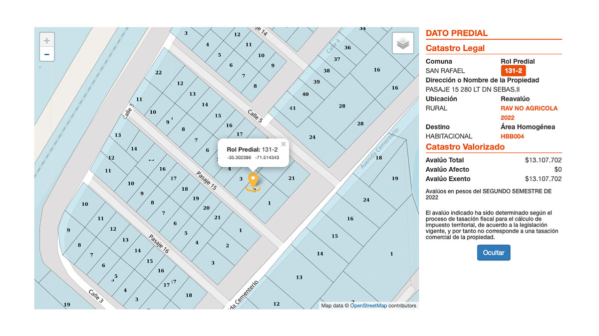 PRIMER JUZGADO DE LETRAS DE TALCA, rematará el 15 de Diciembre de 2022, a las 12:00 hrs, inmueble ubicado en pasaje quince numero doscientos ochenta, que corresponde al Lote número dos de la Manzana Q, del Loteo Don Sebastian II-B, de la comuna de San Rafael, provincia de Talca, a fojas 769, Nº 623, del Registro de Propiedad del año 2012 del Conservador de Bienes Raíces de Talca.